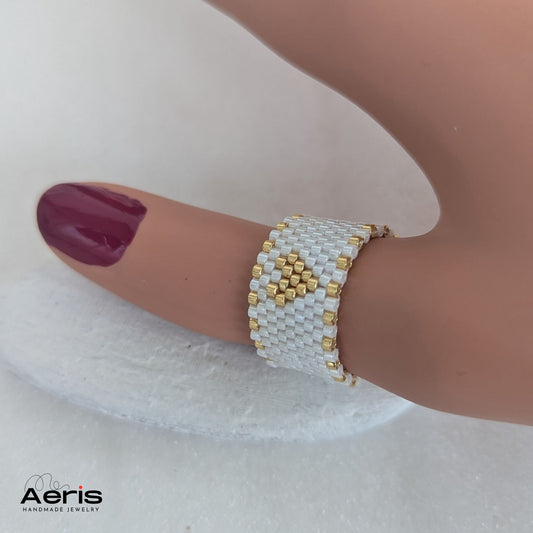 Inel lat din margele Miyuki Delica - Heart of Gold