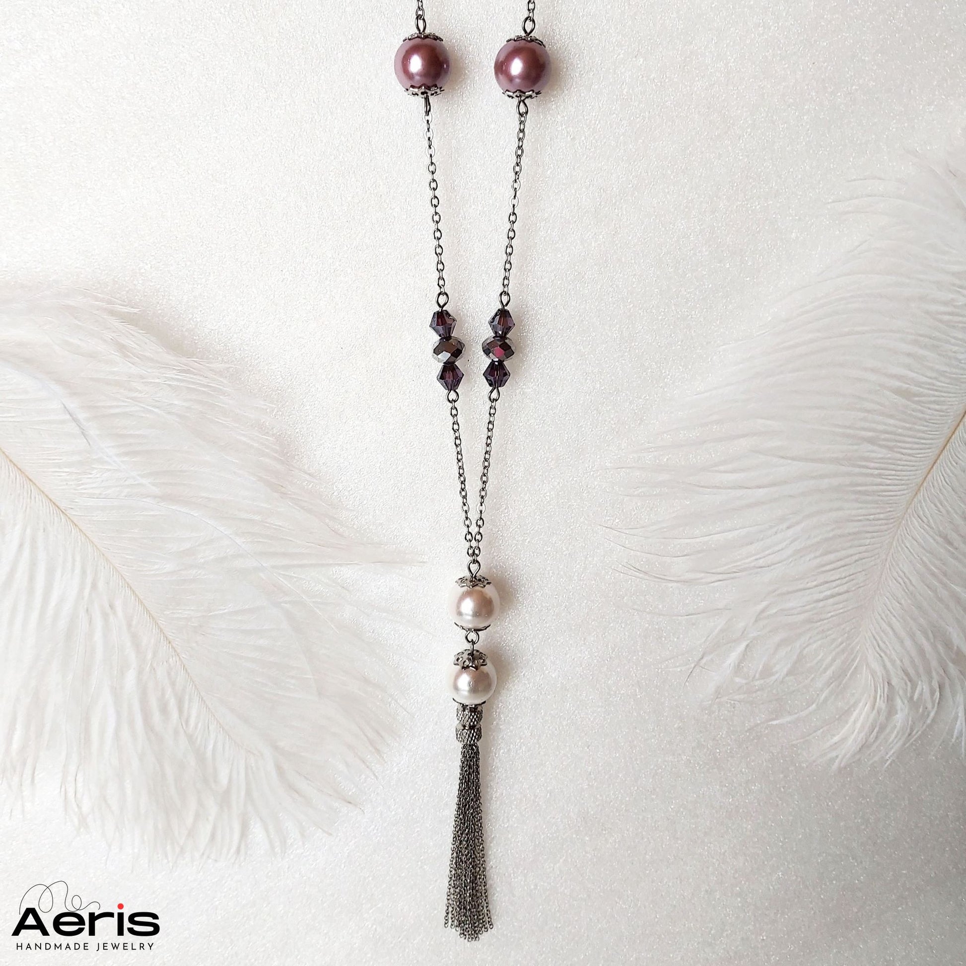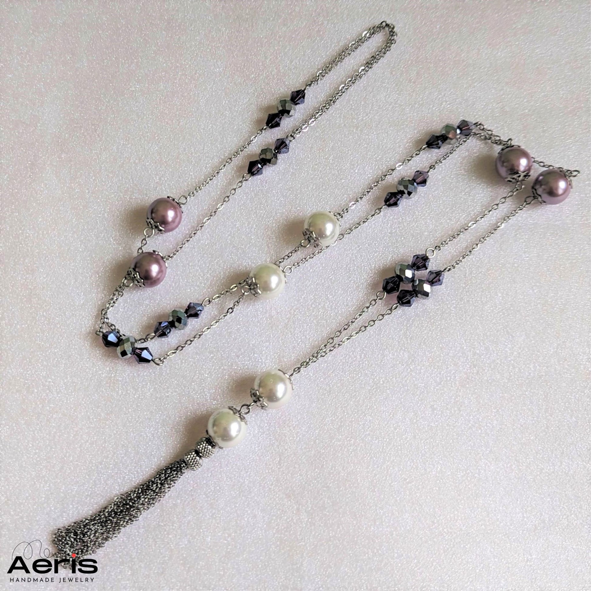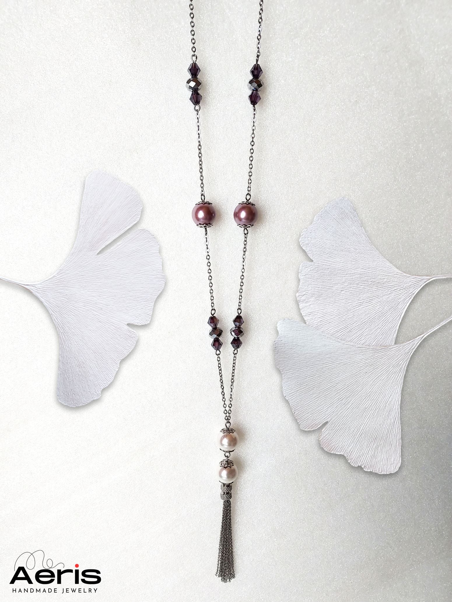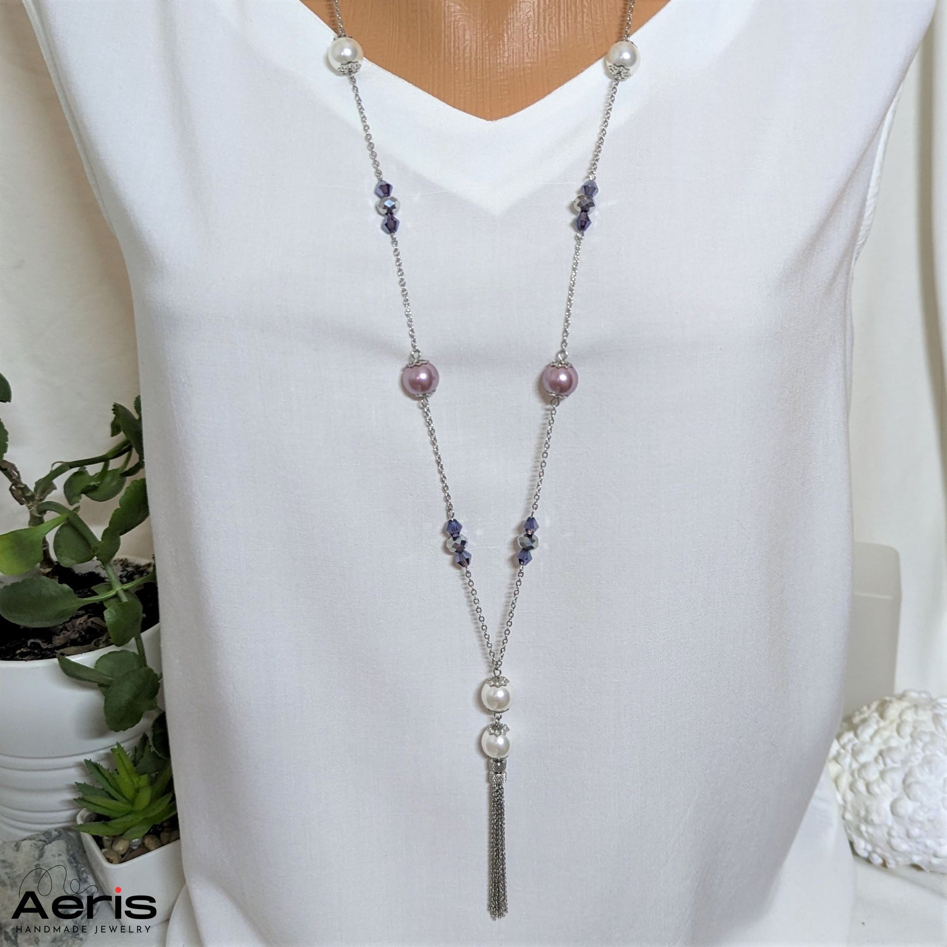 Cauti pentru garderoba ta un accesoriu versatil și elegant, care este mereu în tendințe? Acest colier lung cu pandantiv, realizat din perle de sidef si cristale de sticla fatetate, ar putea fi o alegere inspirata.